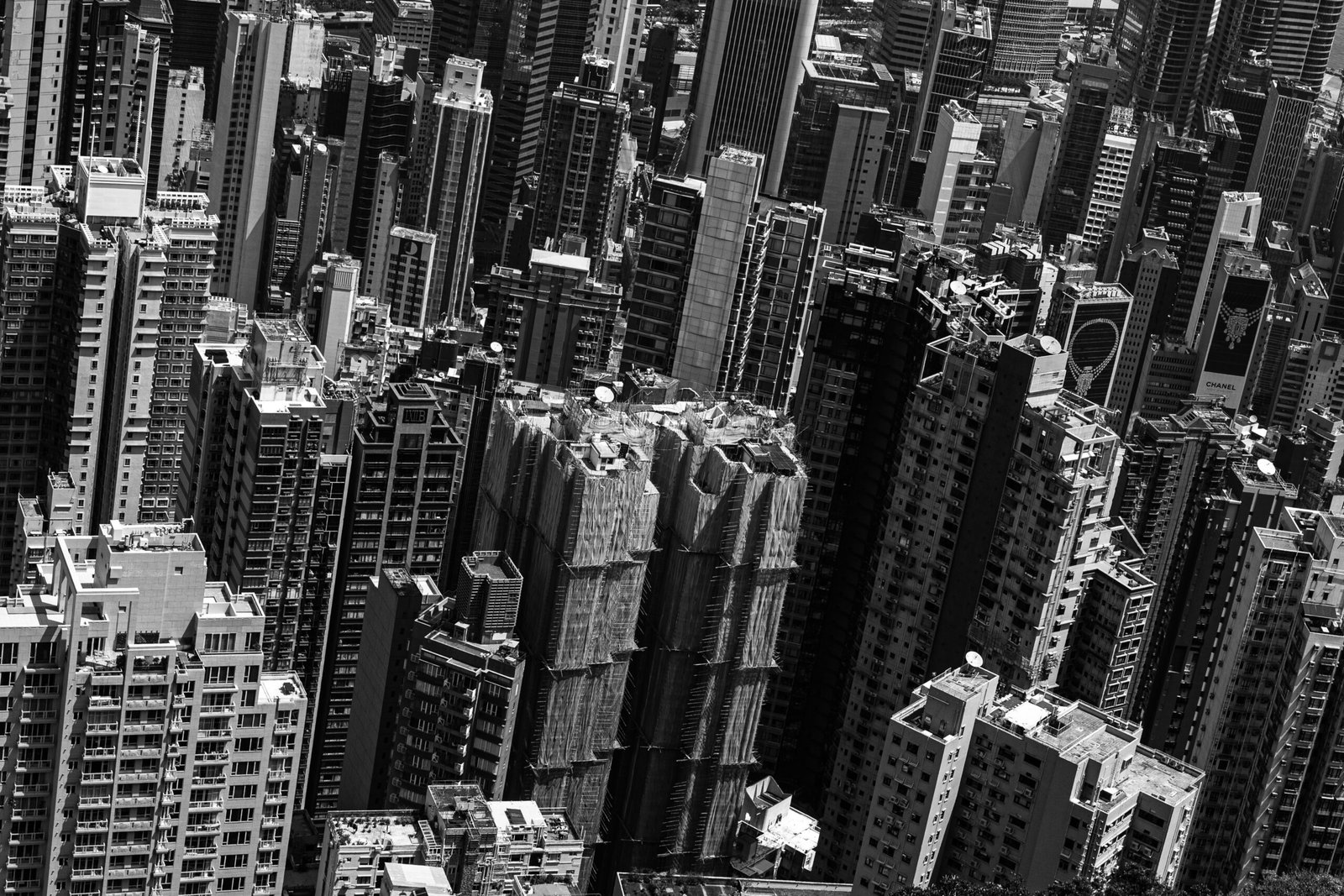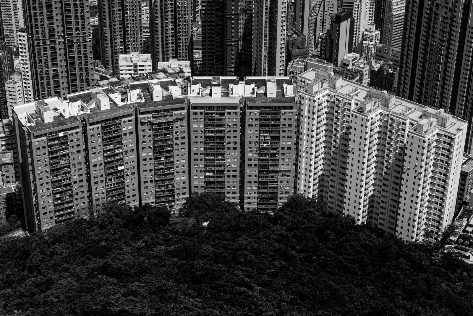 Architecture is not the mian point of interest in my photography. I rarely go somewhere with the sole purpose of documenting buildings. However, this was not the case about the Victoria’s Peak in Hong Kong. When I had an opportunity to climb this hill, it was total no-brainer. I had anticipated it would be great to see one-in-the-world view for the skyscraper city from just above the skyscraper level, yet I was still astounded by the experience. Seeing the upscaled texture of the city, where high-rise buildings seem to be creating organic, yet concrete patterns was different than anything I have ever seen. Most notably – these patterns are appearing just next to the real flora, in the hilly terrain of the island and continental part.
